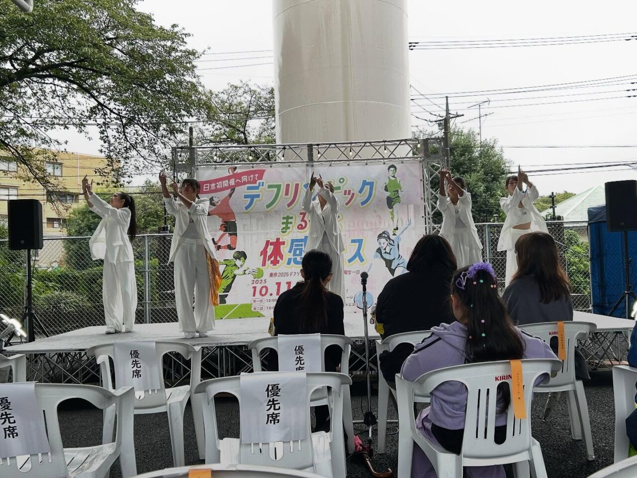 冷たい雨が降る天候の中ではありましたが、デフアスリート日本代表と元バレーボール日本代表の狩野舞子さんによるトークイベントや、吉本手話部によるテンポのいい漫才に続いて、キッツ・ジュニアによる手話ダンスパフォーマンス