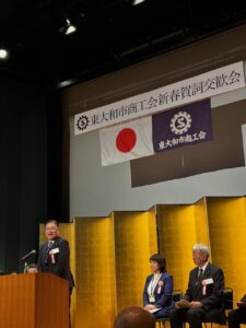 2026年1月16日 東大和市商工会主催の「新春賀詞交換会」に出席 2026年1月16日 最終更新日時 : 2026年1月27日 あらはた伸一 本日、東大和市商工会主催の「新春賀詞交換会」に来賓として出席させていただきました。 会場では、日頃から地域経済の発展にご尽力されている商工会の皆様をはじめ、多くの関係者の方々と直接お話しする機会をいただきました。地元の活力を肌で感じるとともに、皆様が抱える現場の声や、これからの街づくりに対する熱い想いを伺い、身の引き締まる思いです。 また、会場では東大和市を拠点に活動するアイスホッケーチーム「東京ワイルズ(TOKYO WILDS)」の皆様も紹介されており、スポーツを通じた地域の盛り上がりにも大きな期待が膨らみました。