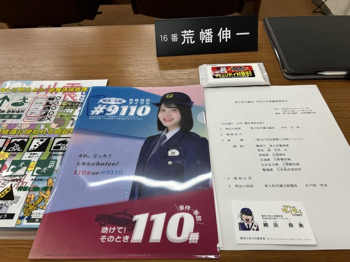 2026年1月21日 東大和市議員研修会に参加 2026年1月21日 最終更新日時 : 2026年1月27日 あらはた伸一 本日の午前中は、東大和市議員研修会が開催されました。 今年は、警視庁東大和警察署の森署長をはじめ多くの課長や署員の方が来庁してくださり、「管内の治安情勢と対策について」特殊詐欺の現状や手口に対する対策等、自然災害や交通事故の分析 とにかく自転車が絡んだ事故が最も多いので気をつけましょう! とても有意義な研修会でした。