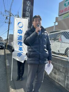 2026年1月21日 市内各所にて街頭演説を実施 2026年1月21日 最終更新日時 : 2026年1月27日 あらはた伸一 本日の午後より、公明党会派二手に分かれ、市内各所にて、佐竹議員・東口議員と共に街頭演説を行いました。 なぜ大きな決断を下し、新しい歩みを始めようとしているのか。その真意についてお話しさせていただきました。 新しい「中道の挑戦」に、皆様の温かいご理解と力強いご支援を賜りますよう、心よりお願い申し上げます。