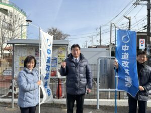 2026年1月26日 市内各所にて街頭演説を実施 2026年1月26日 最終更新日時 : 2026年1月27日 あらはた伸一 明日はいよいよ公示日です。 本日は、我々がマイクを握れる最後の日なので、地域の皆さまへ「中道改革連合」について訴えさせていただきました。 本日の演説中、私の声を聞きつけて遠くから駆けつけてくださった方がいらっしゃり、「頑張ってください!」「応援してます」という温かい激励を直接いただき、胸が熱くなると同時に、この戦いに挑む大きな勇気をいただきました!!
