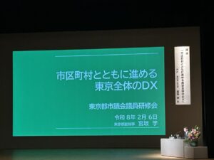 2026年2月6日 第64回東京都市議会議員研修会に出席 2026年2月6日 最終更新日時 : 2026年2月13日 あらはた伸一 本日、府中の森「どりーむホール」にて開催された第64回東京都市議会議員研修会に出席いたしました。 立春を過ぎ、会場周辺は春のようなポカポカとした陽気に包まれていました。今回の講師は、東京都副知事の宮坂学氏。「市区町村とともに進める東京全体のDX」というテーマでご講演いただきました。 民間での豊富な経験に裏打ちされたお話は、非常にテンポが良く、かつ説得力に溢れるものでした。行政のデジタル化は単なる効率化ではなく、市民の皆様の利便性をどう高めるか。 今回学んだ「為になる」知見を、今後の市政活動にしっかりと活かしてまいります!