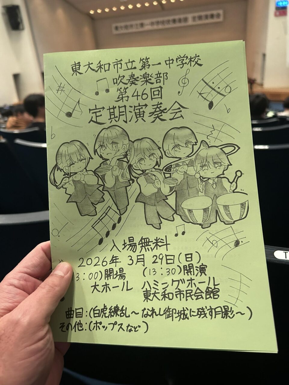 2026年3月29日 「東大和市立第一中学校吹奏楽部 第46回定期演奏会」を鑑賞